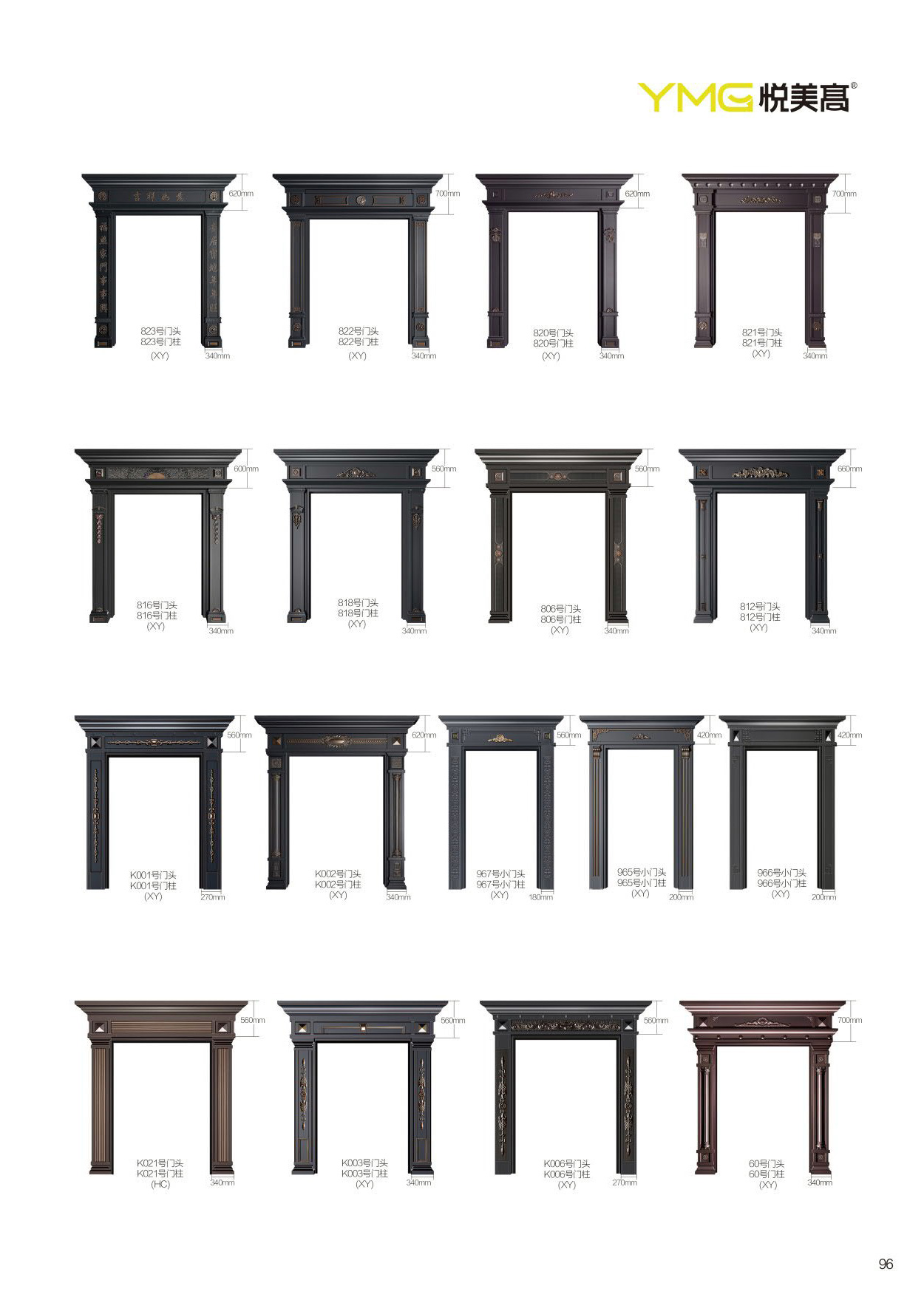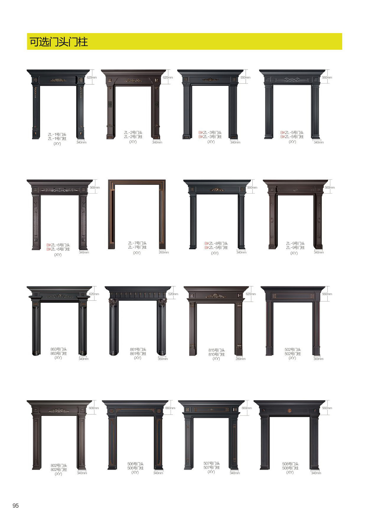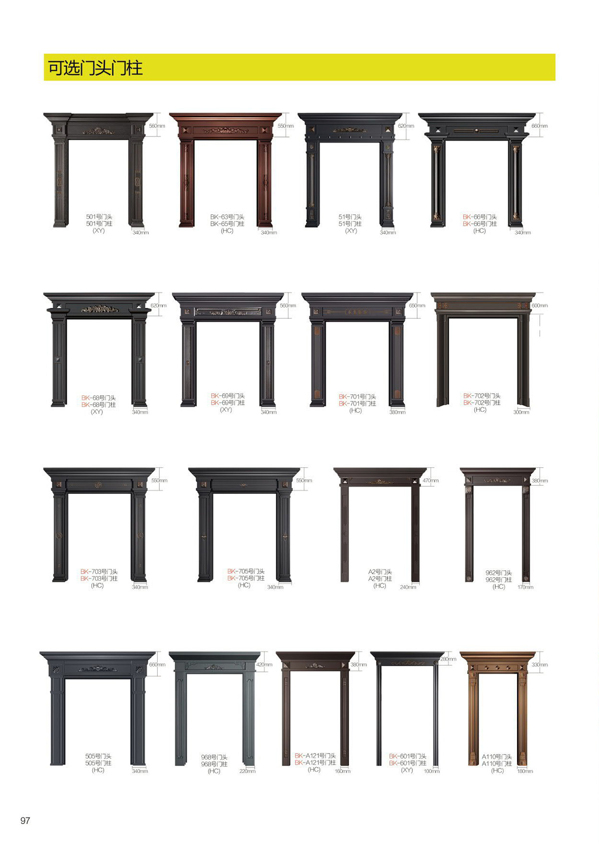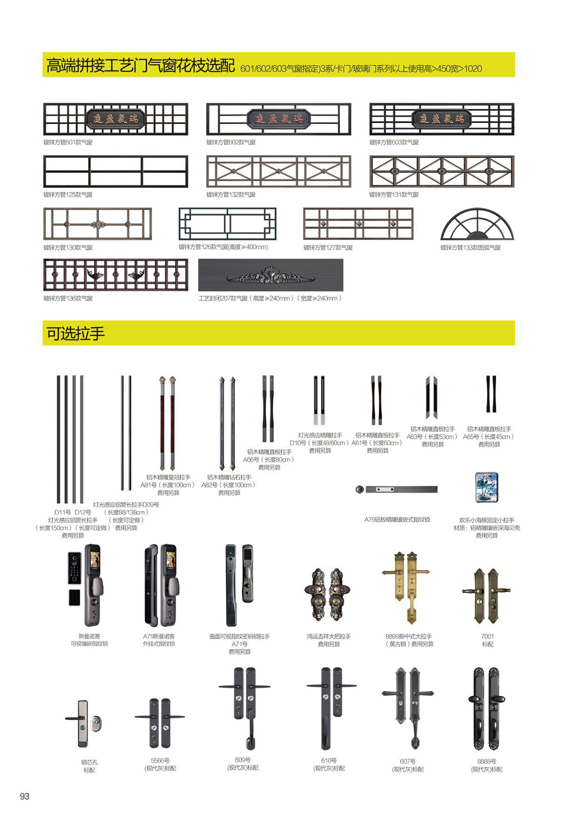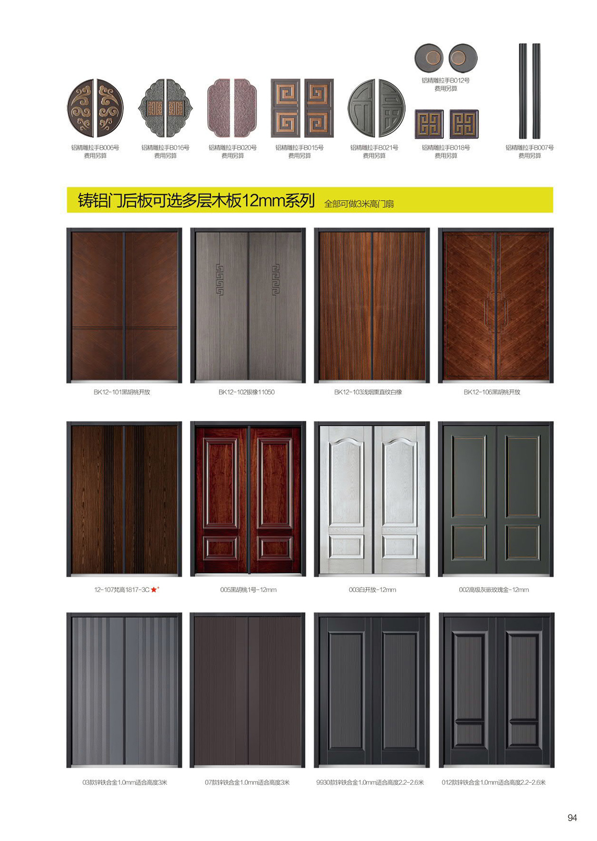 精雕铸铝门可选配件门头、门柱、拉手、工艺门气窗花枝、铸铝门后板可选多层木板